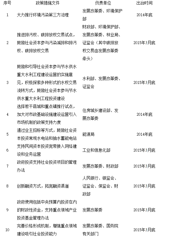(一)指导思想。全面贯彻落实党的十八大和十八届三中、四中全会精神,按照党中央、国务院决策部署,使市场在资源配置中起决定性作用和更好发挥政府作用,打破行业垄断和市场壁垒,切实降低准入门槛,建立公平开放透明的市场规则,营造权利平等、机会平等、规则平等的投资环境,进一步鼓励社会投资特别是民间投资,盘活存量、用好增量,调结构、补短板,服务国家生产力布局,促进重点领域建设,增加公共产品有效供给。