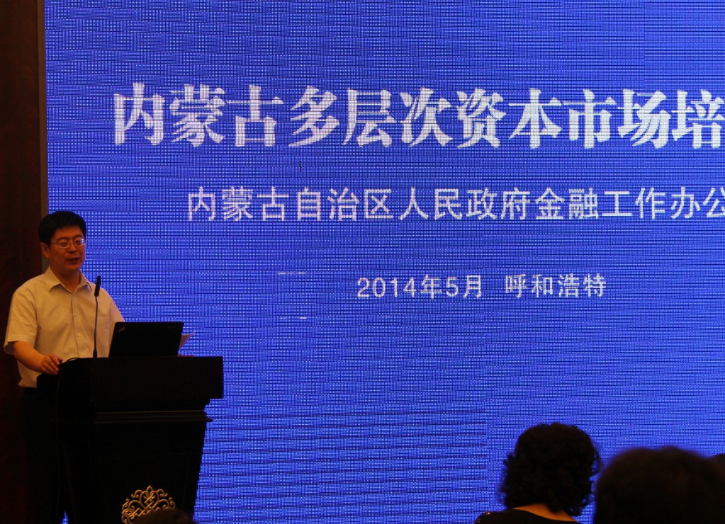 2014年5月29日,由自治区金融办组织的全区多层次资本市场培训班在呼和浩特市开班。此次培训班邀请了上海证券交易所债券业务部高级经理汤毅、全国股转公司市场发展部执行经理罗良志、内蒙古蒙草抗旱股份有限公司副总经理尹松涛、内蒙古股权交易中心总经理李斌作为主讲嘉宾,各盟市(旗县)金融办负责人和我区部分企业代表参加了培训。