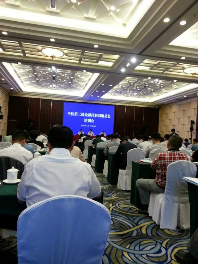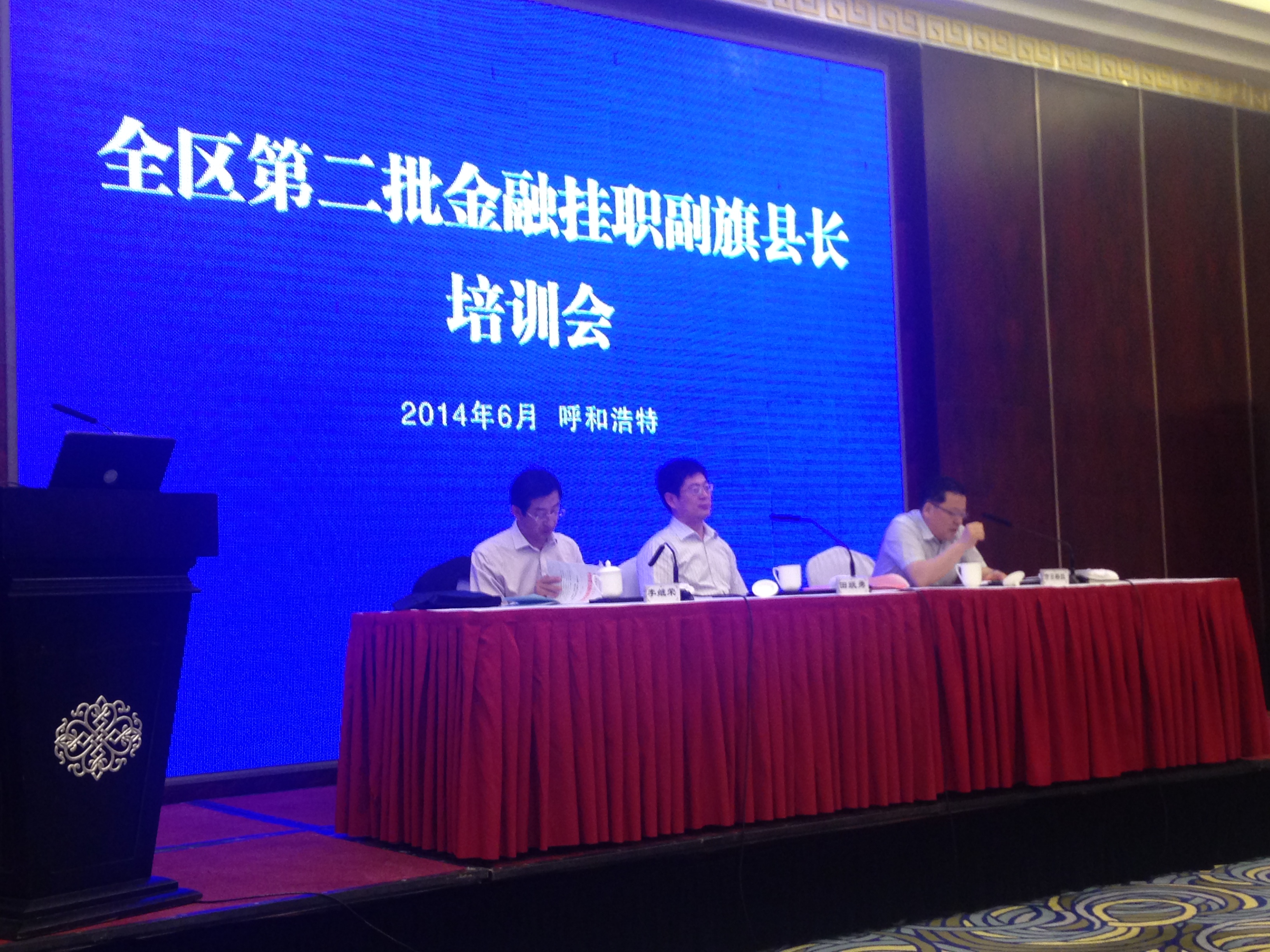 2014年6月6日,由 我区金融办组织的《全区第二批金融挂职副旗县长培训会》在呼和浩特召开。此次培训会由吉日格拉副主任主持,田跃勇副主任、各旗县负责人等出席会议。会议邀请了内蒙古党校公共管理部主任李树林、人民银行呼和浩特中心支行金融研究处处长王晓中、内蒙古股权交易中心常务副总孙枫作为主讲嘉宾。