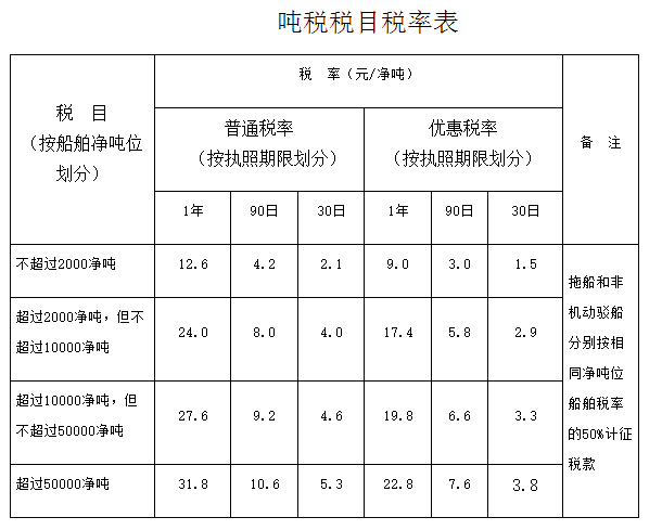 第二条 吨税的税目、税率依照本条例所附的《吨税税目税率表》执行。