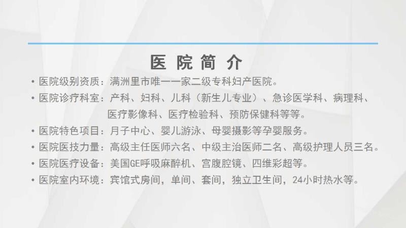 爱康医院是满洲里市唯一一家二级专科妇产医院。医院拥有优秀的医师团队,先进的进口设备,以及完善的医疗设施,自2017年3月份成立以来,力求为广大医患提供最优质的服务,截止目前已做手术600多例,得到了患者的一致好评。本次医院路演的项目有两方面内容,一是智慧养老平台的建设,二是体检中心的搭建。为响应当地政府的号召,医院计划开展智慧养老平台项目,以妇产医院为平台有效的整合各级资源、借助有效的平台及终端向老人及家属等提供涉及安全看护、健康管理、生活照料、休闲娱乐、亲情关爱等五个方面的服务,通过移动终端让老人实现会联网、会搜索、会下载、会安装、会使用“五个会”,实现“老人网上自由行” ,让老人、家属获得“触手可及”的服务保障。另一方面,医院准备搭建满洲里市唯一的一家全方位的体检中心,目前医院已与美国GE厂家达成初步的协议。