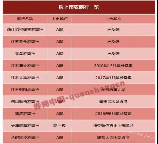 2016年1月,A股农商行第一股江阴农商行的成功上市,监管部门对农商行上市的积极态度,使得排队农商行陆续上市,点燃了农商行奔赴资本市场的热情,并直接推动了新一批农商行筹备IPO事宜。