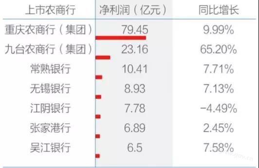 截至目前,H股有两家农商行,包括重庆农商行和吉林九台农商行;A股有五家农商行,均来自苏南地区,包括常熟、无锡、江阴、张家港、吴江等农商行。